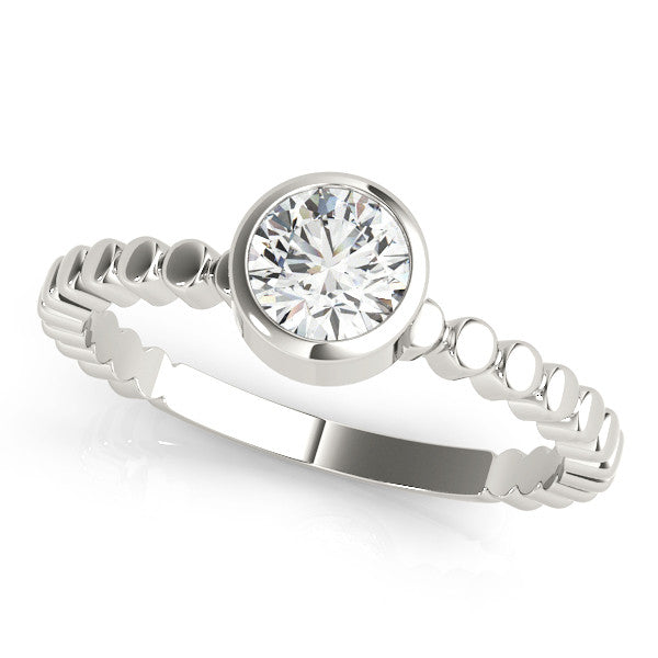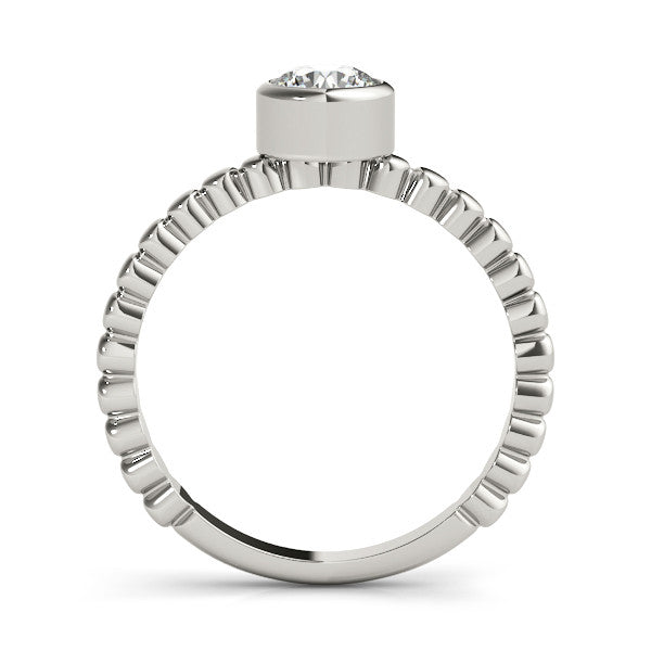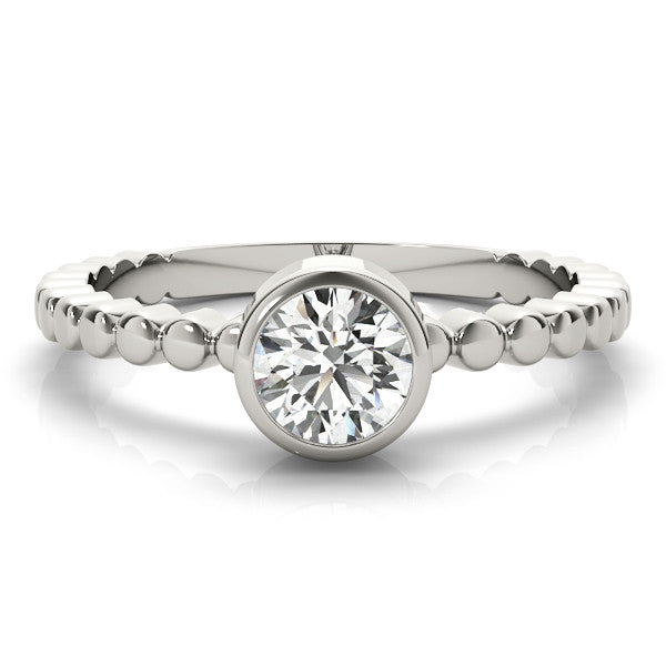 Platinum Bezel Set Round Solitaire Beaded Band Ring