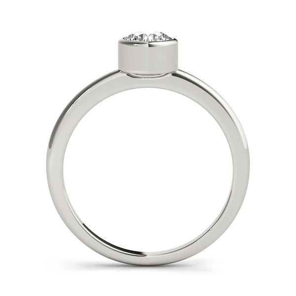 Platinum Bezel Set Round Solitaire Engagement Ring with Classic Band