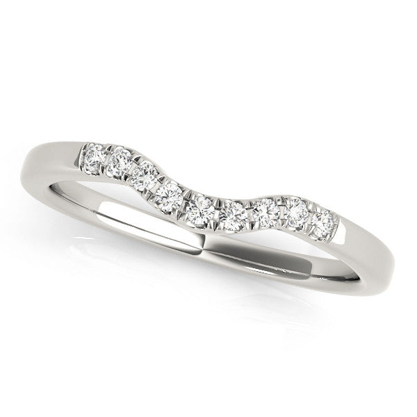 Platinum Round Diamond Curved Pavé Wedding Band with U-Prong Setting