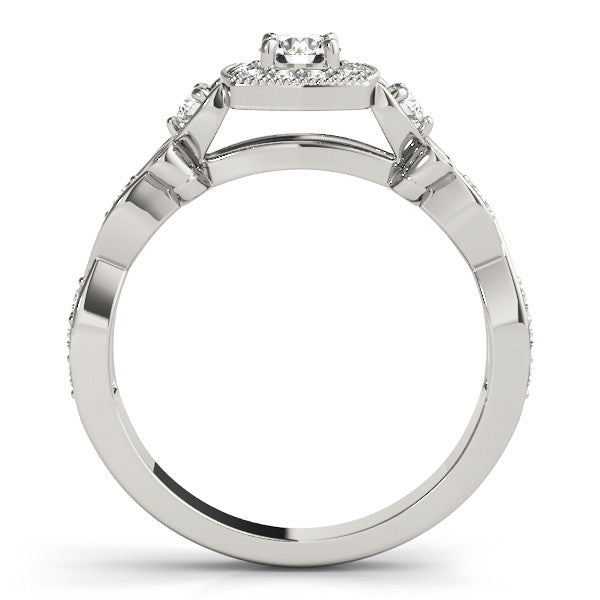 Platinum Cushion Halo Round Diamond Twisted Band Four-Prong Ring