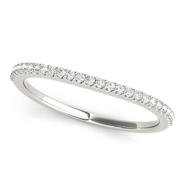 Platinum Pavé Round Diamond Curved Wedding Band with Shared Prong Setting