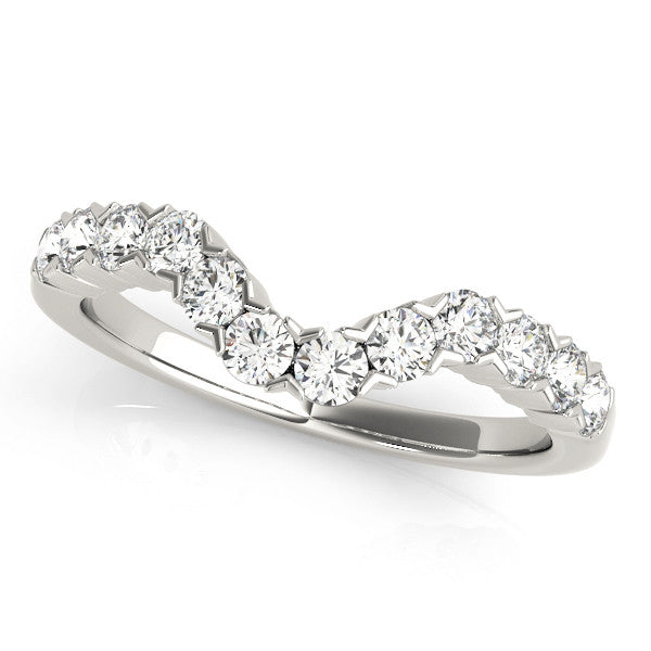 Platinum Diamond Pavé V-Shaped Chevron Band with Round Cut Stones and Shared Prong Setting