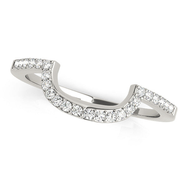 Platinum Curved Diamond Wedding Band with Round Cut Stones and Shared Prong Setting