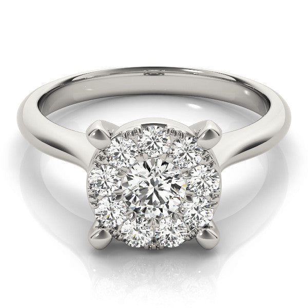 Platinum Round Diamond Cluster Halo Solitaire with Four-Prong Setting