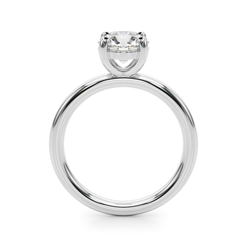 Platinum Round Solitaire Diamond Ring with Four-Prong Setting on a Plain Band