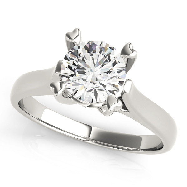 Platinum Round Solitaire Heart Prong Engagement Ring with Tapered Band