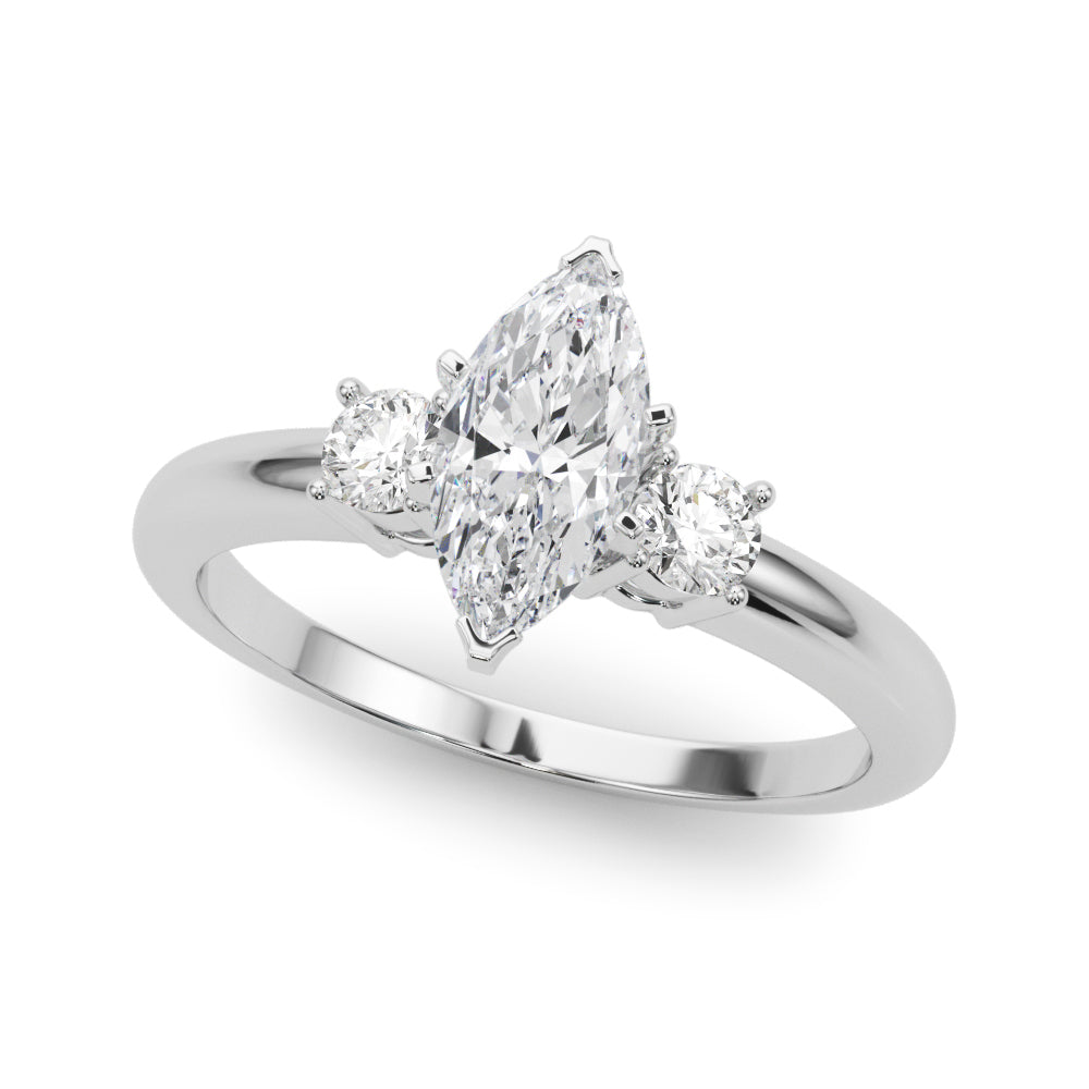 Platinum Three-Stone Marquise Cut Diamond Solitaire with Prong Setting and Classic Band