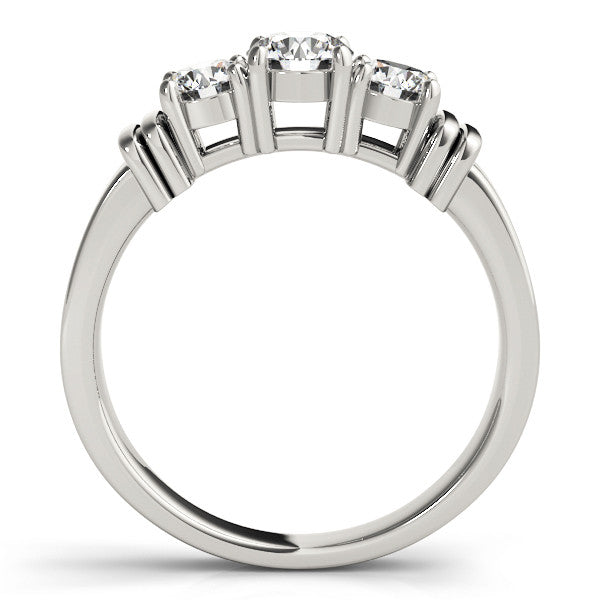 This elegant ring features a stunning trio of round brilliant diamonds, expertly set in a channel setting that enhances their natural sparkle. The band is crafted from high-quality metal, offering a sleek and polished appearance that complements the brilliance of the stones. Each diamond is securely held in place with a bar prong setting, ensuring both durability and style. Ideal for special occasions or as a timeless piece for everyday wear, this ring embodies sophistication and grace.