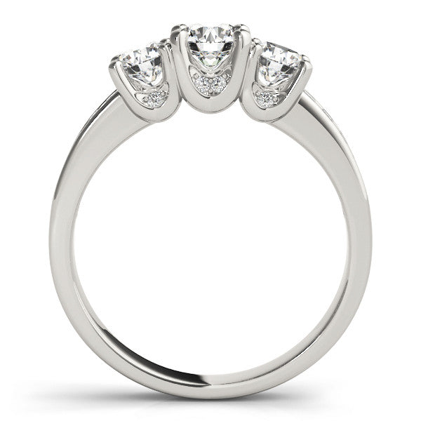 Platinum Three-Stone Round Diamond Channel-Set Band with Prong Setting