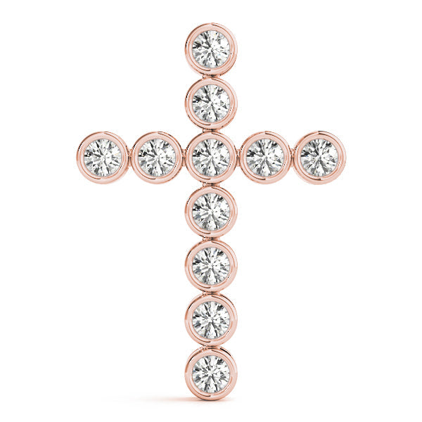 Rose gold Bezel-Set Round Diamond Cross Pendant