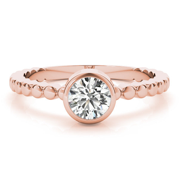 Rose gold Bezel Set Round Solitaire Beaded Band Ring