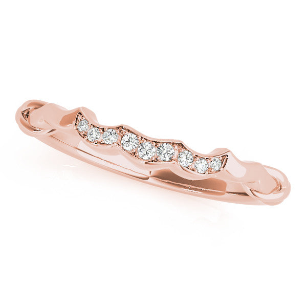 Rose gold Scalloped Diamond Curved Band with Round Brilliant Stones and Shared Prong Setting