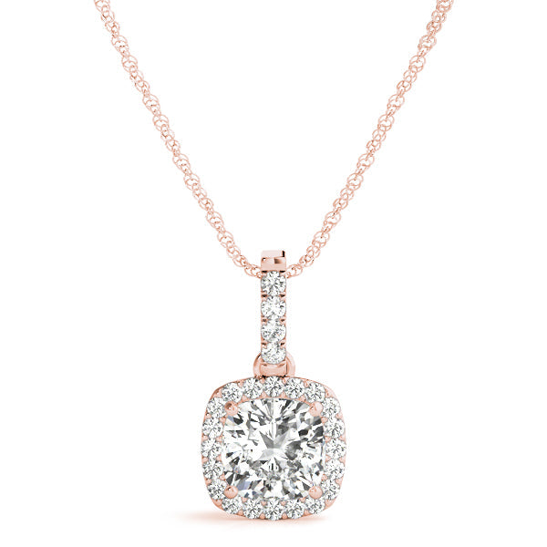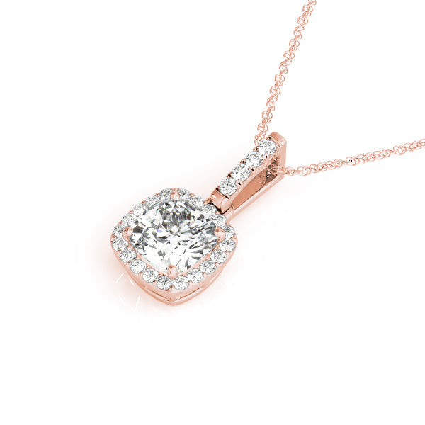Rose gold Cushion Halo Diamond Pendant with Prong Setting