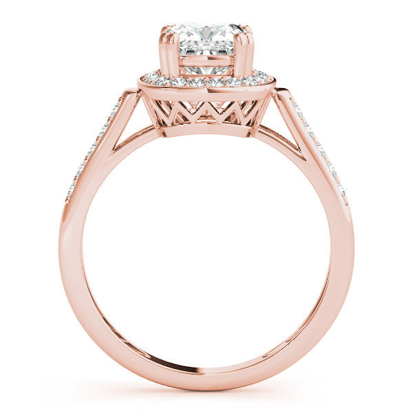 Rose gold Cushion Halo Diamond Ring with Split Shank and Four-Prong Setting