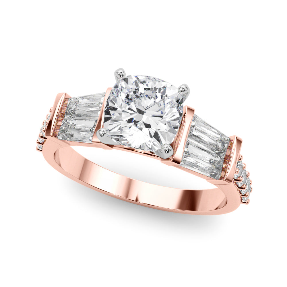 Rose gold Cushion Solitaire Baguette Side Stone Channel Set Engagement Ring