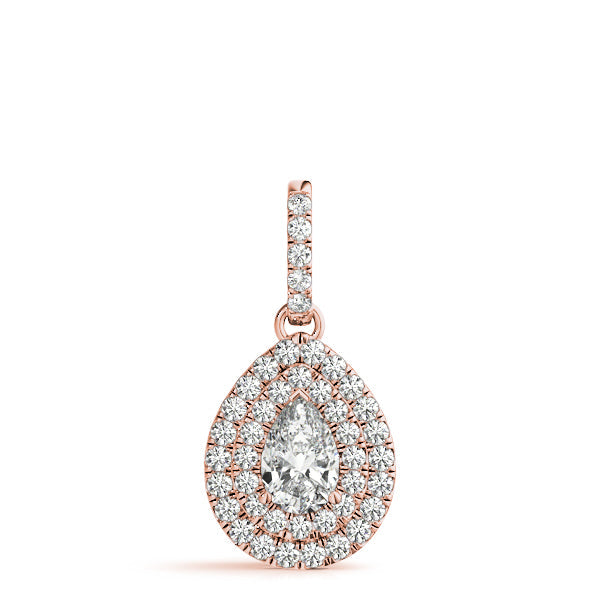 Rose gold Double Halo Pear Diamond Pendant with Pavé Setting