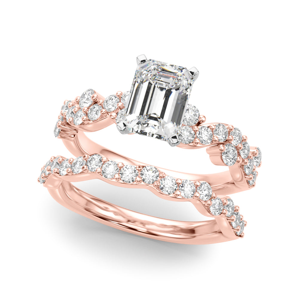 Rose gold Emerald Cut Solitaire Diamond Twisted Band with Pave Setting