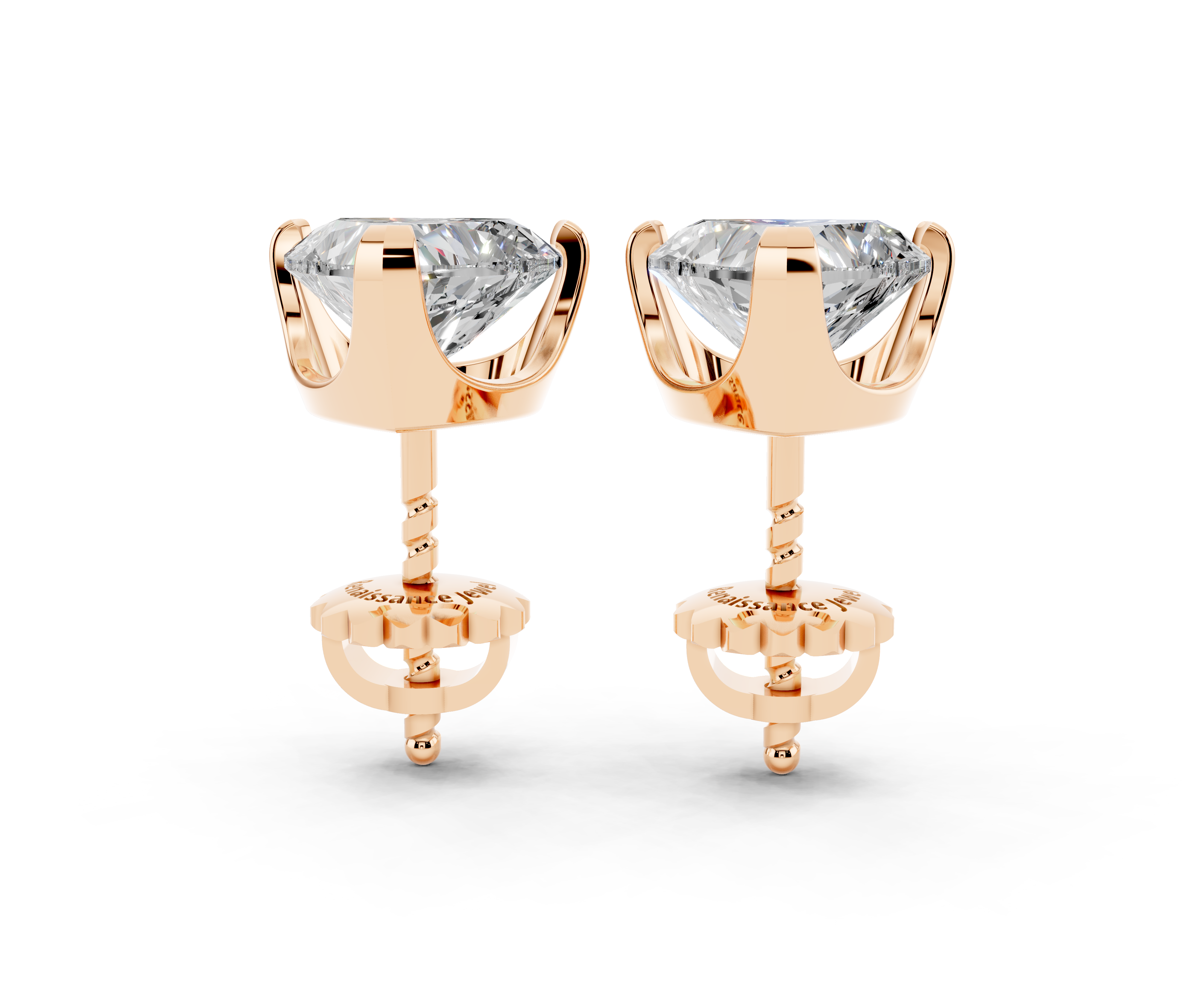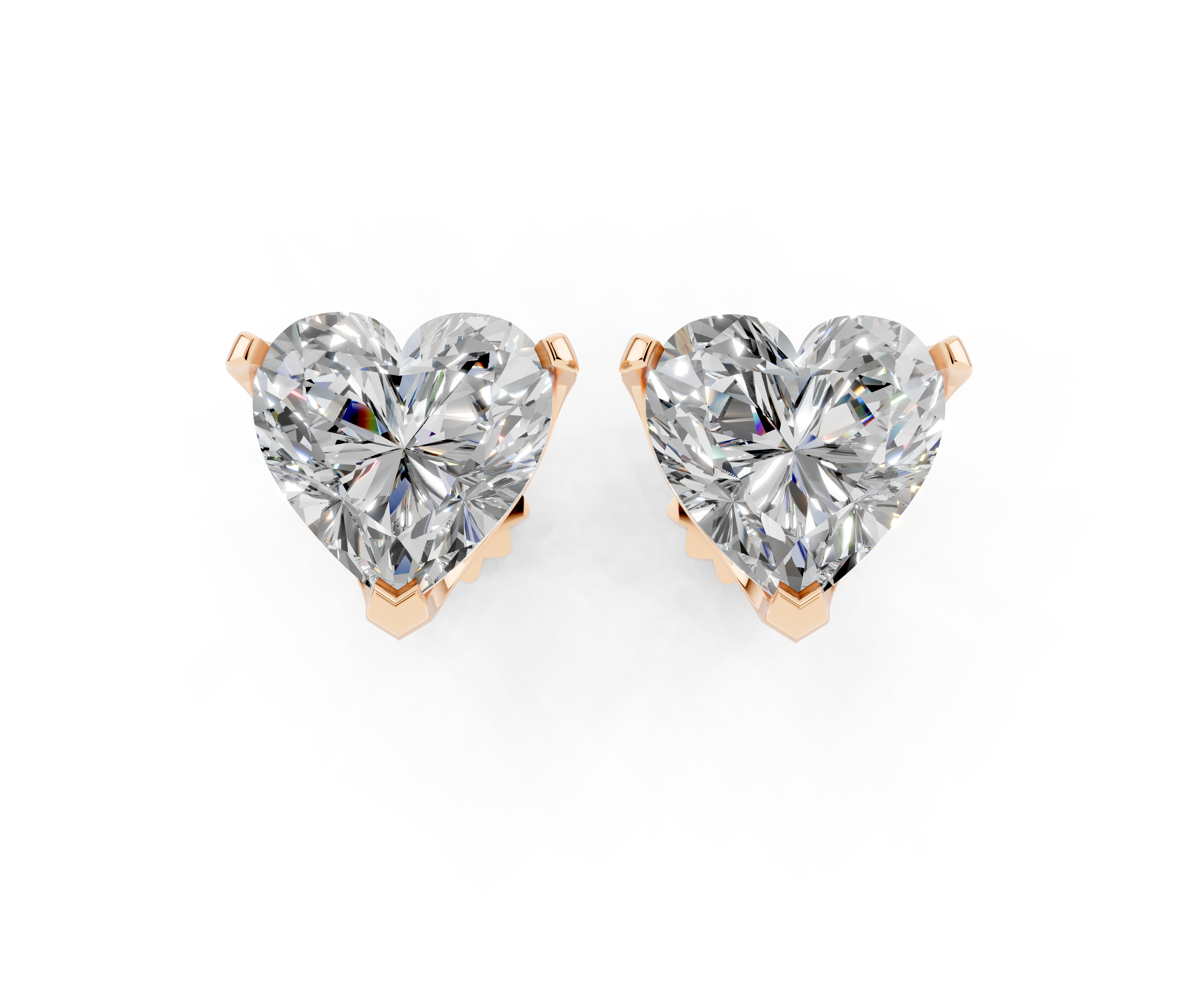 These exquisite earrings feature heart brilliant diamonds, each securely held in a classic four-prong basket setting. The stones are expertly cut to maximize their sparkle and brilliance, making them a timeless addition to any jewelry collection. Set in lustrous rose gold, these stud earrings offer a perfect blend of elegance and sophistication, ideal for both everyday wear and special occasions. The secure push-back or screw-back closure ensures comfort and ease of wear, making these earrings a must-have for any jewelry enthusiast.