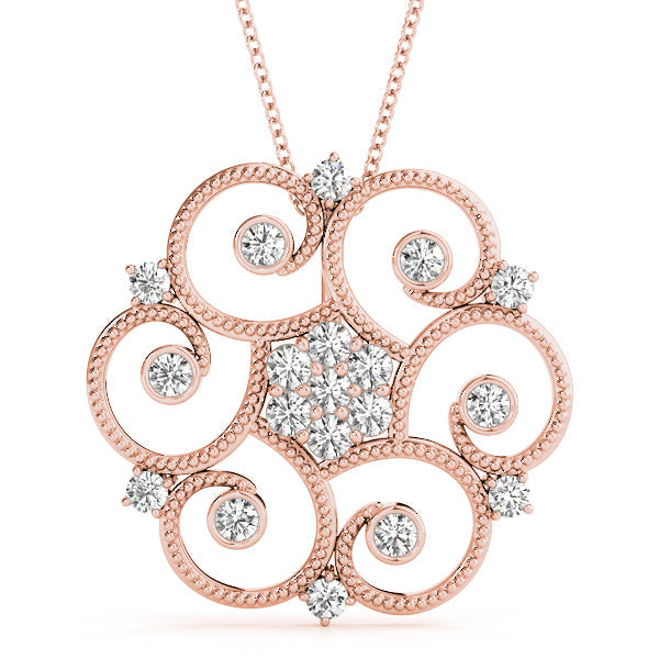 Rose gold Milgrain Diamond Round Swirl Pendant with Prong Setting