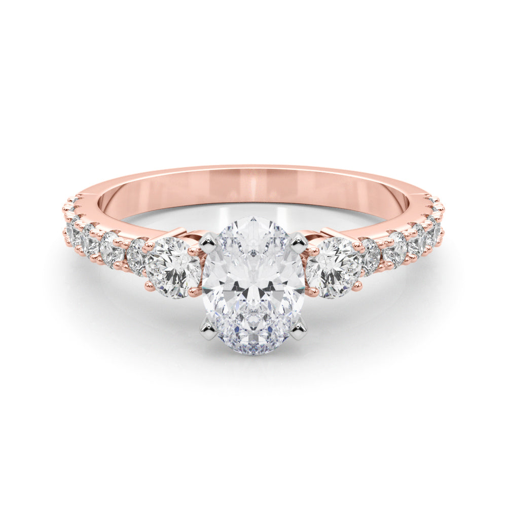 Rose gold Oval Cut Three-Stone Diamond Pavé Band with Prong Setting