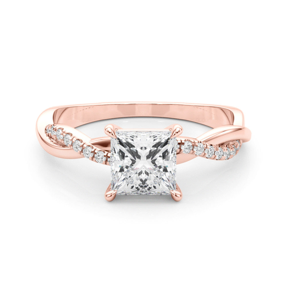 Rose gold Oval Cut Twist Band Solitaire Diamond Ring with Pavé Setting