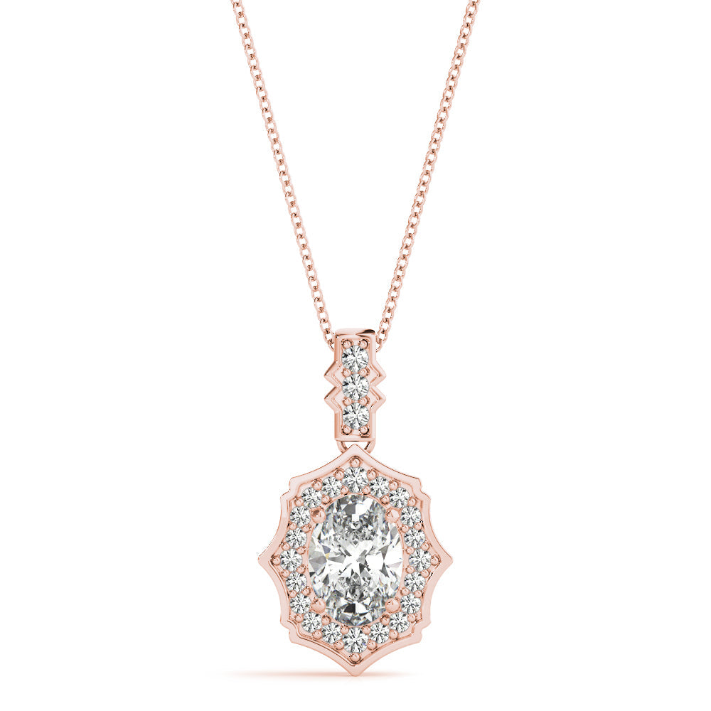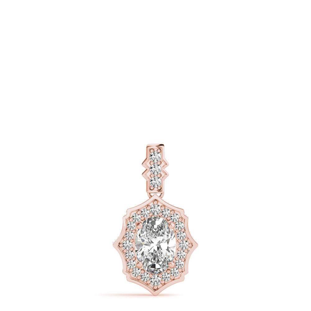 Rose gold Oval Diamond Halo Pendant with Milgrain Prong Setting