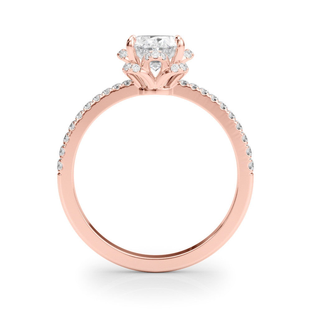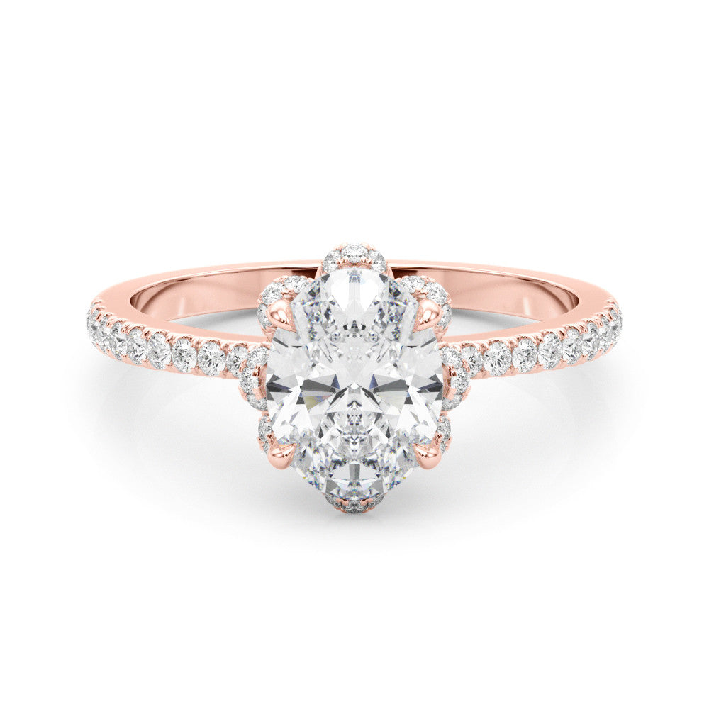 Rose gold Oval Halo Diamond Pave Band Ring with Four-Prong Setting