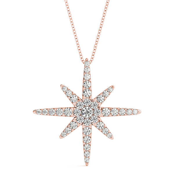 Rose gold Pavé Round Diamond Starburst Pendant with Four-Prong Setting