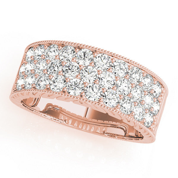 Rose gold Pavé Round Diamond Wide Band with Milgrain Edge