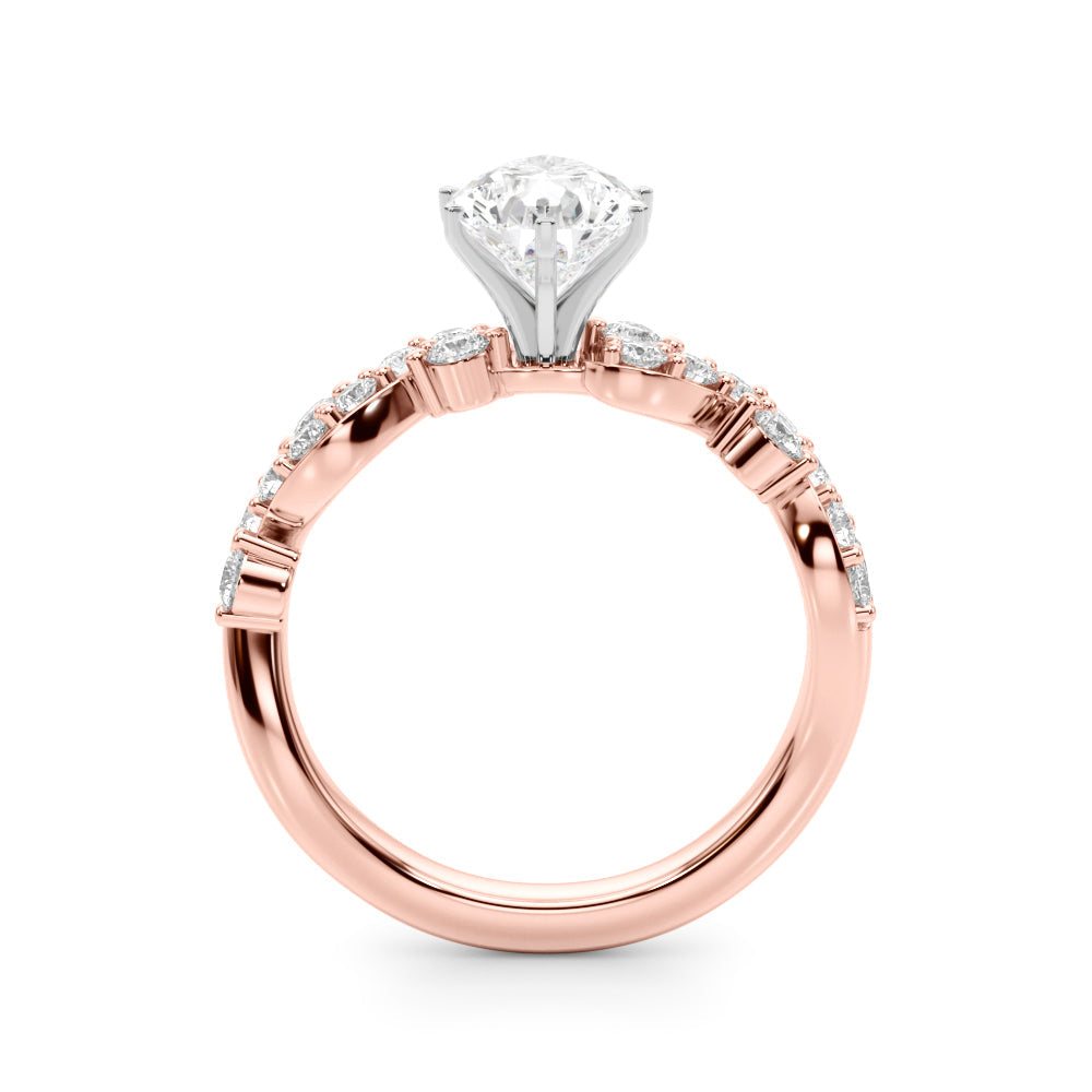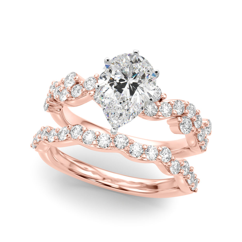 Rose gold Pear Cut Solitaire Diamond Twisted Band with Pave Setting