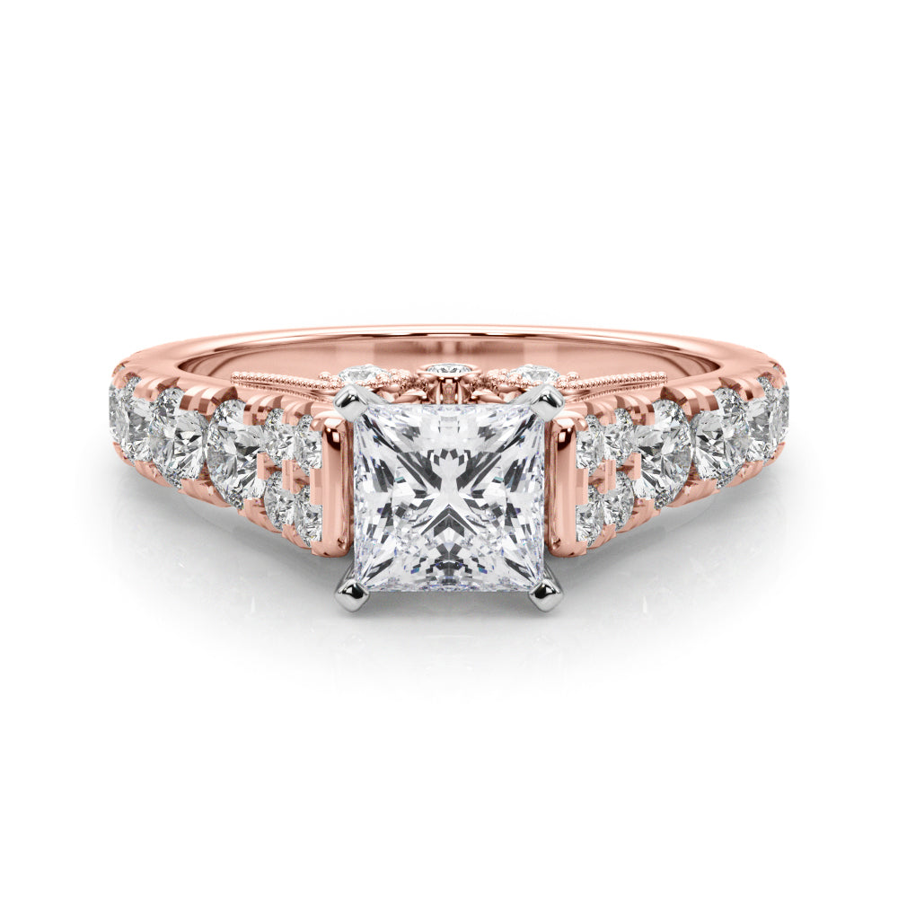 Rose gold Princess Cut Diamond Pavé Band Solitaire with Four-Prong Setting