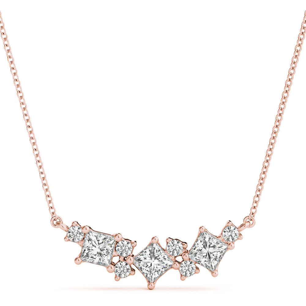 Rose gold Princess Cut V-Shape Diamond Pendant with Four-Prong Setting
