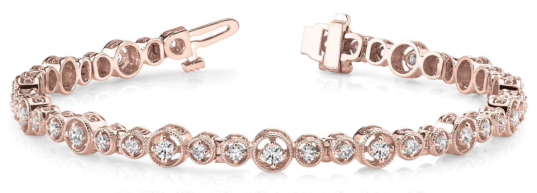 Rose gold Round Bezel-Set Diamond Tennis Bracelet with Milgrain Detailing