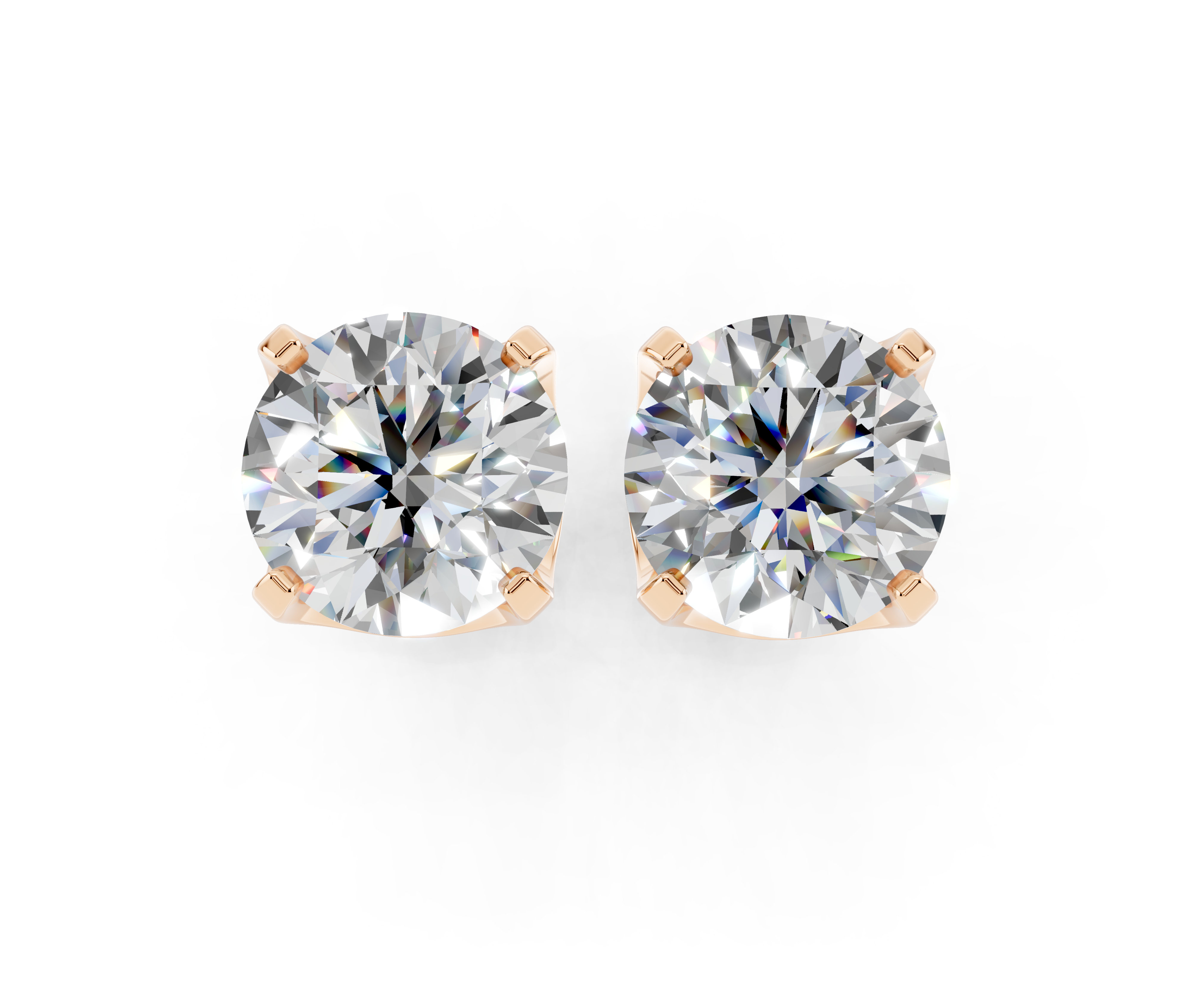 These exquisite earrings feature round brilliant diamonds, each securely held in a classic four-prong basket setting. The stones are expertly cut to maximize their sparkle and brilliance, making them a timeless addition to any jewelry collection. Set in lustrous rose gold, these stud earrings offer a perfect blend of elegance and sophistication, ideal for both everyday wear and special occasions. The secure push-back or screw-back closure ensures comfort and ease of wear, making these earrings a must-have for any jewelry enthusiast.