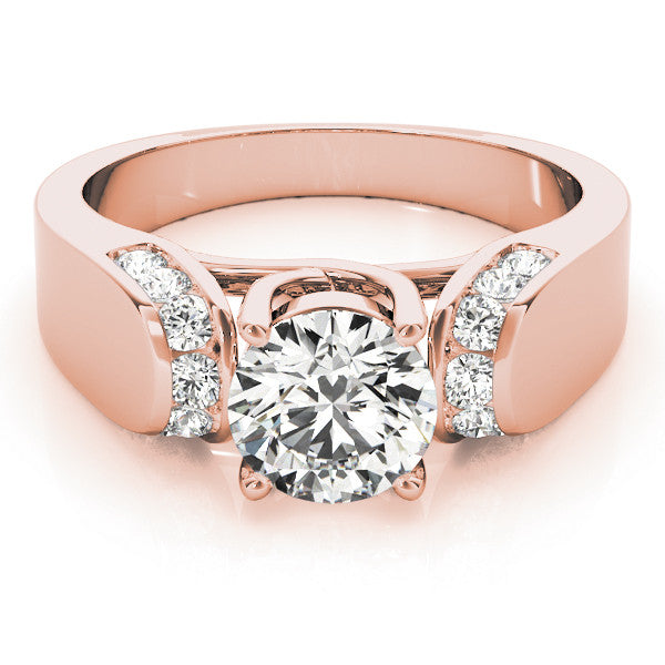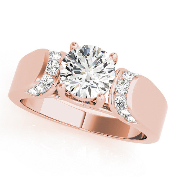 Rose gold Round Cut Diamond Channel Set Solitaire Ring with Four-Prong Setting