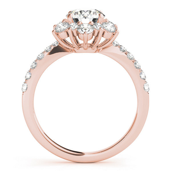 Rose gold Round Cut Diamond Floral Halo Pave Band with Prong Setting