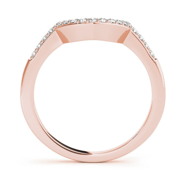 Rose gold Round Diamond Curved Pavé Wedding Band with U-Prong Setting