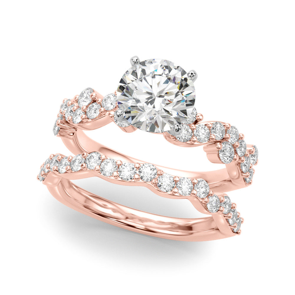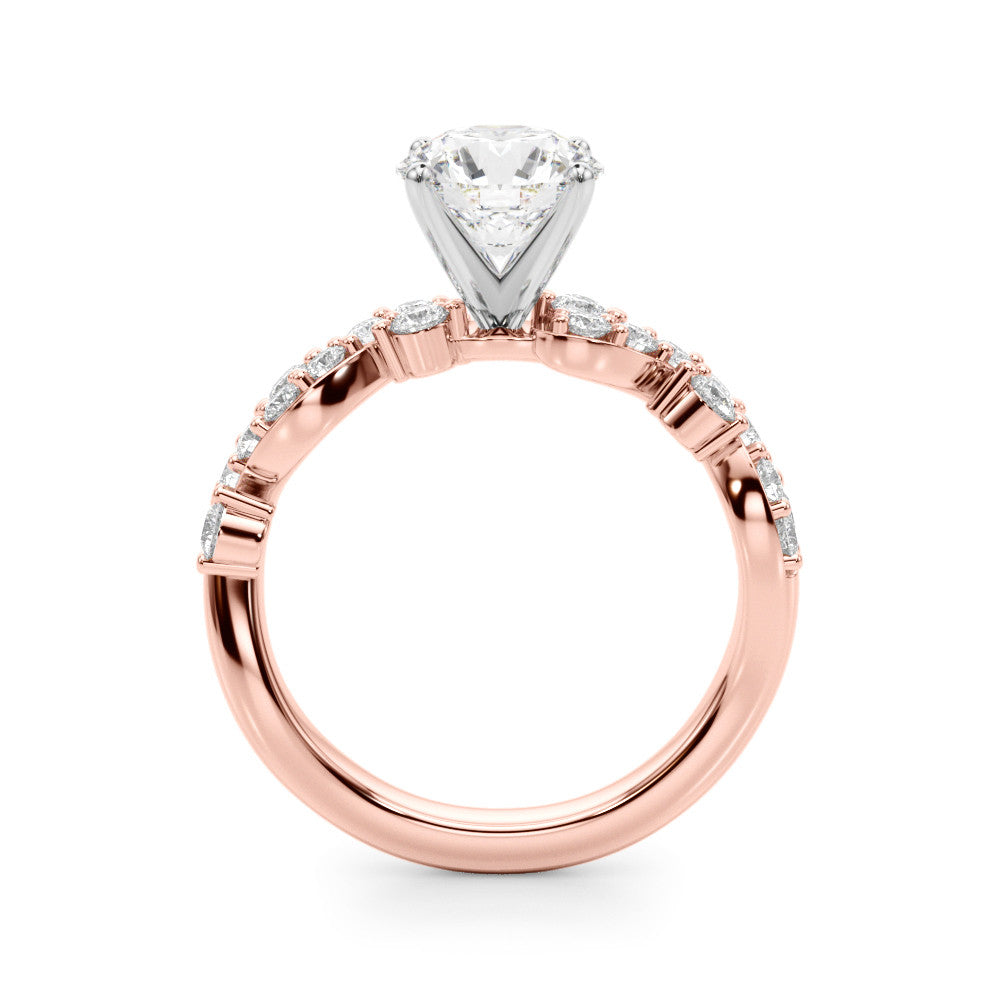 Rose gold Round Cut Solitaire Diamond Twisted Band with Pave Setting