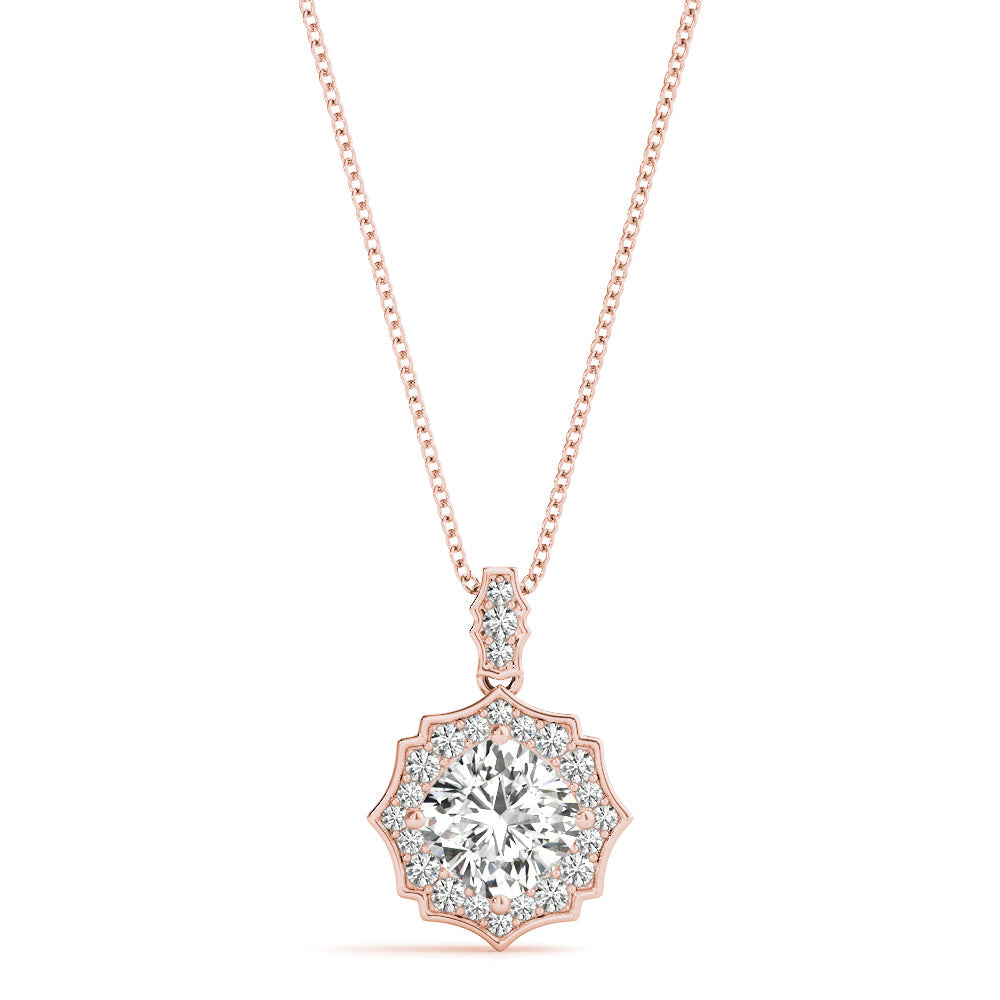 Rose gold Round Diamond Halo Pendant with Milgrain Prong Setting
