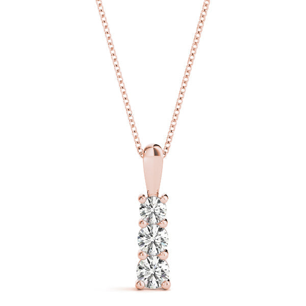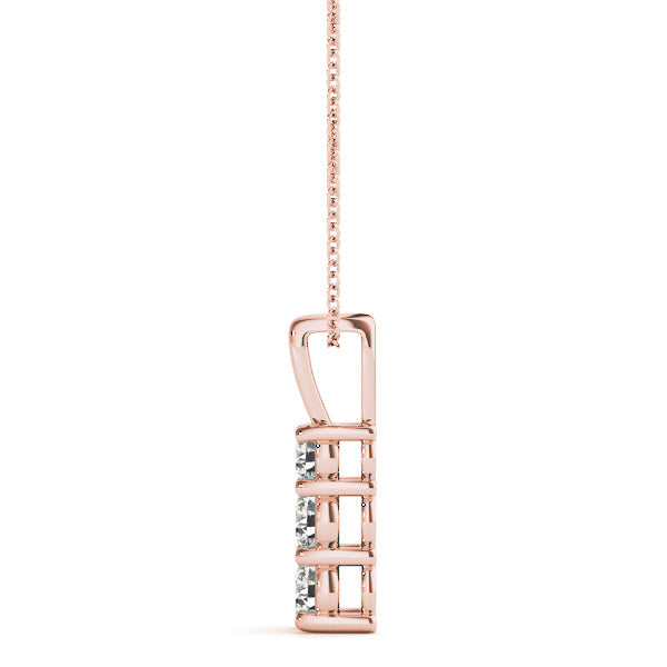 This elegant pendant features a stunning vertical alignment of round-cut diamonds, each securely held in place by a classic prong setting. The design showcases the brilliance of the diamonds, allowing light to pass through and enhance their sparkle. Perfect for any occasion, this pendant adds a touch of sophistication and timeless beauty to any ensemble.