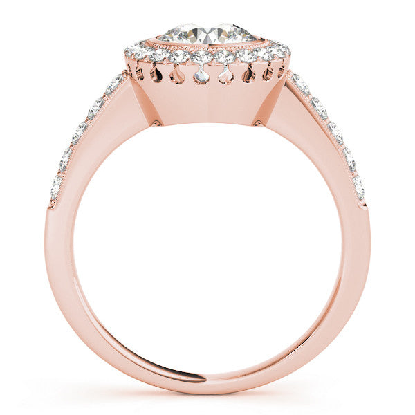 Rose gold Round Halo Diamond Engagement Ring with Bezel Setting and Pavé Band