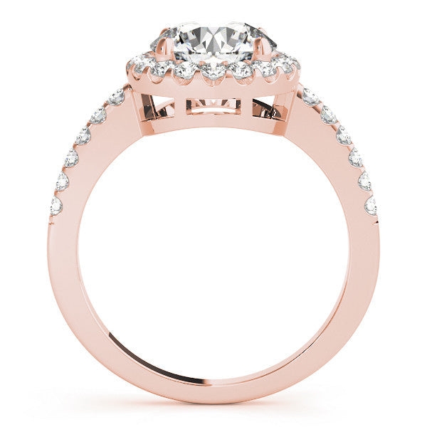 Rose gold Round Halo Diamond Engagement Ring with Pavé Band and Four-Prong Setting