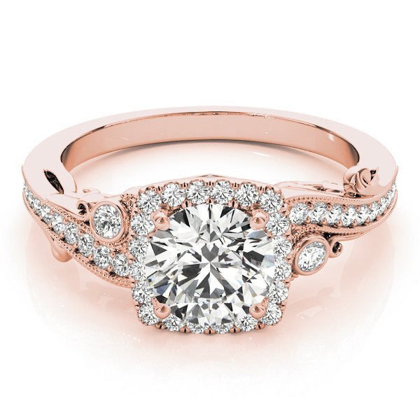 Rose gold Round Halo Diamond Ring with Twisted Band and Four-Prong Setting