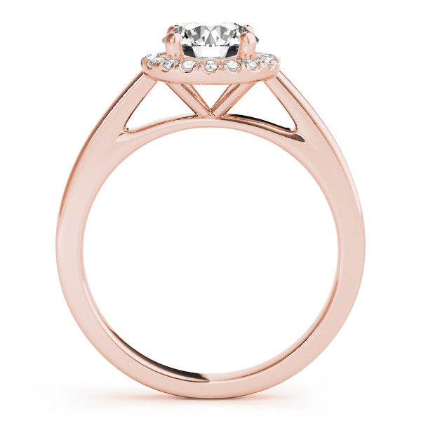 Rose gold Round Halo Diamond Solitaire Ring with Round Band and Four-Prong Setting