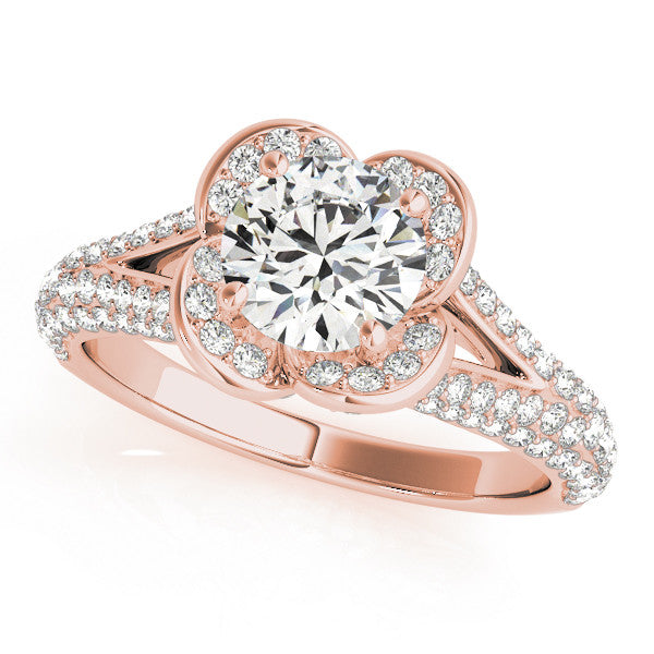 Rose gold Round Halo Floral Diamond Engagement Ring with Pave Split Shank and Four-Prong Setting