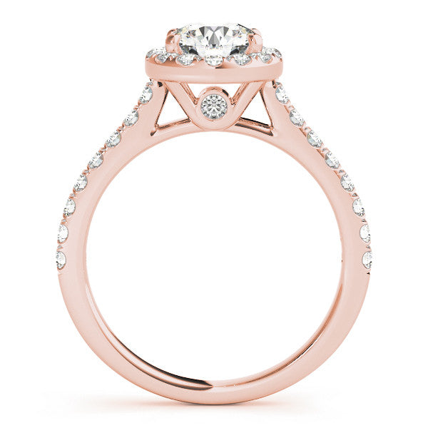 Rose gold Round Halo Pavé Diamond Engagement Ring with Four-Prong Setting