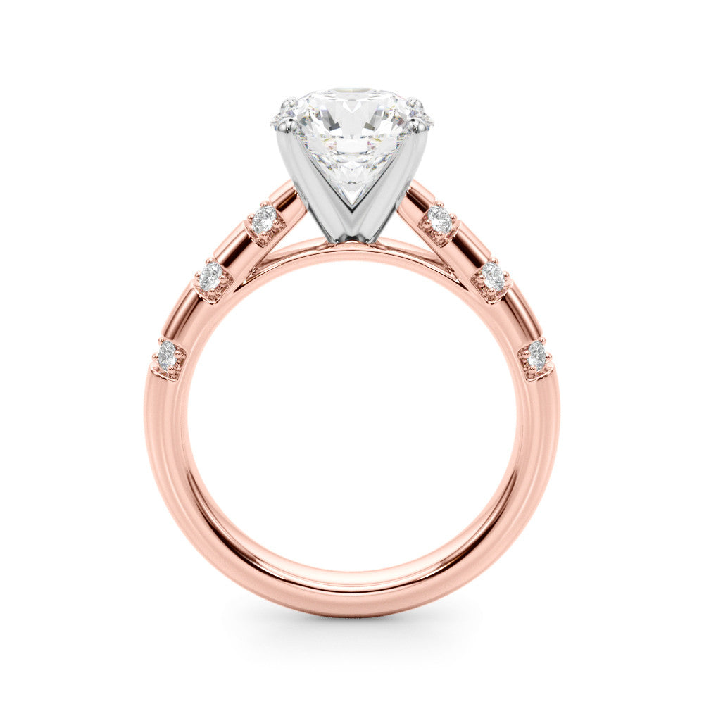 Rose gold Round Solitaire Diamond Ring with Channel Set Band and Four-Prong Setting