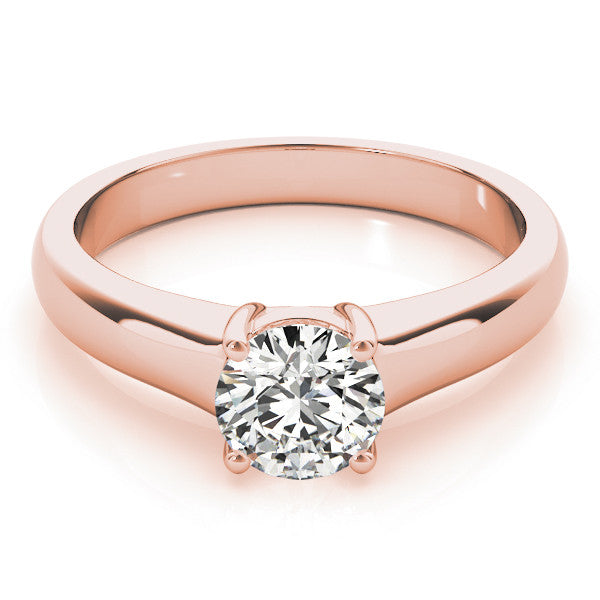 Rose gold Round Solitaire Diamond Ring with Tapered Band and Four-Prong Setting