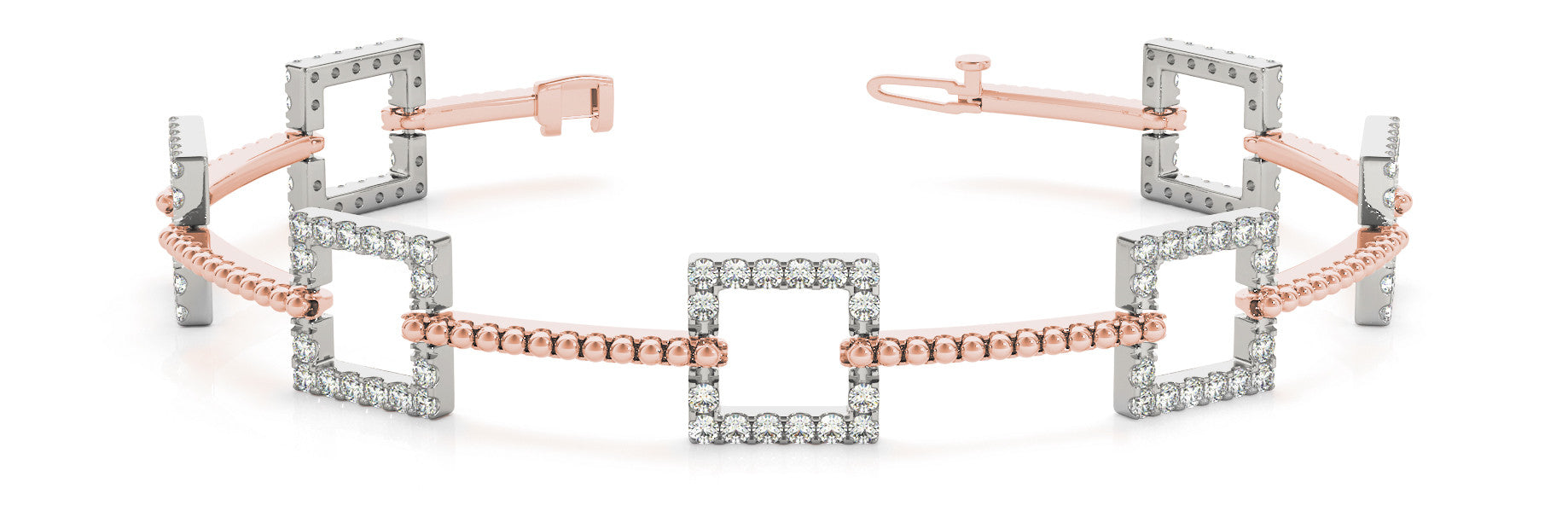 Rose gold Square Diamond Pavé Link Bracelet with Beaded Band and Four-Prong Setting