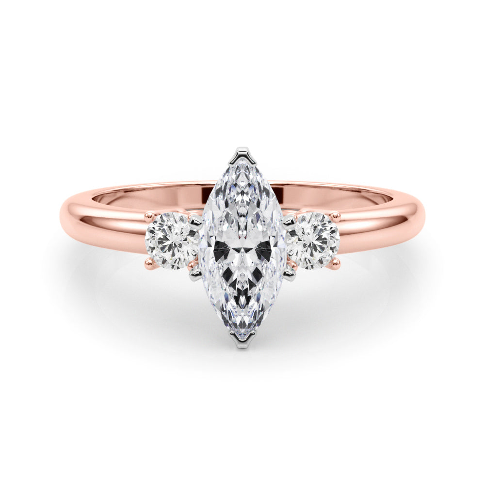 Rose gold Three-Stone Marquise Cut Diamond Solitaire with Prong Setting and Classic Band